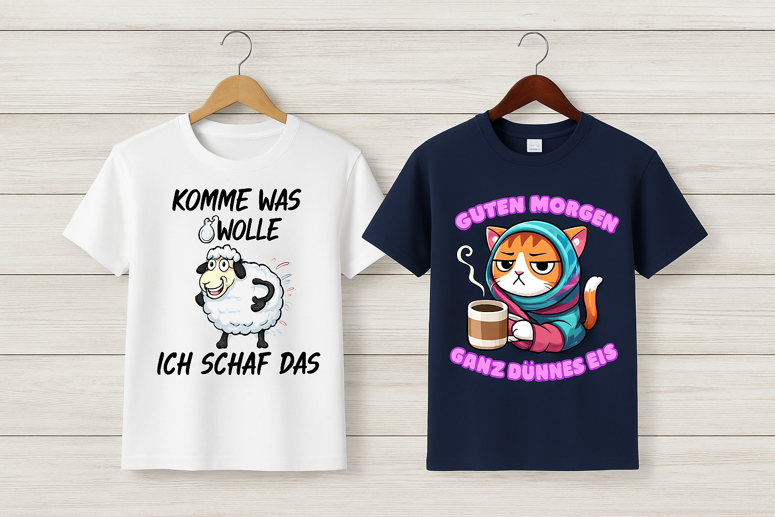 Unsere T-Shirts bringen Freude mit charmanten, witzigen Sprüchen.